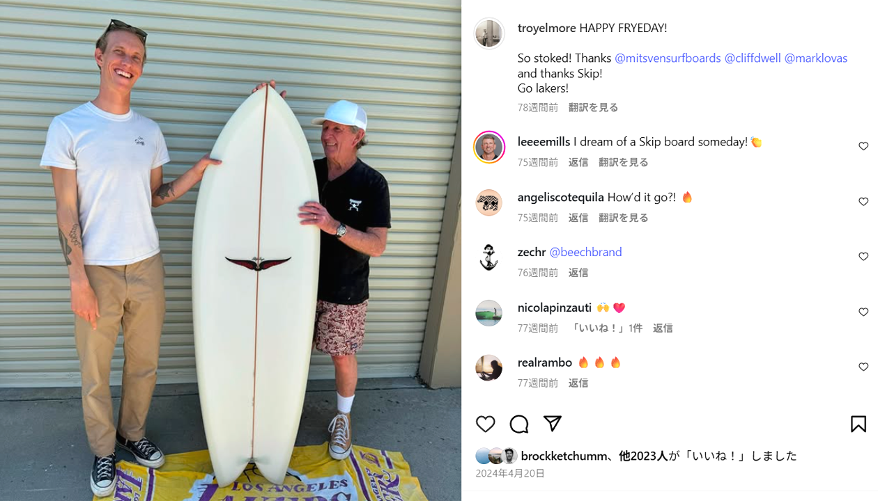 元々フィッシュはサンディエゴで産声を上げたボードであることから、スキップフライ氏を連想させるFrye’d Fishというモデル名を使用しておりました。