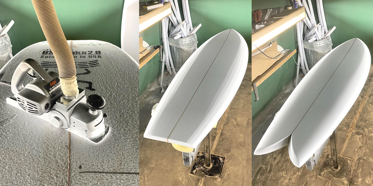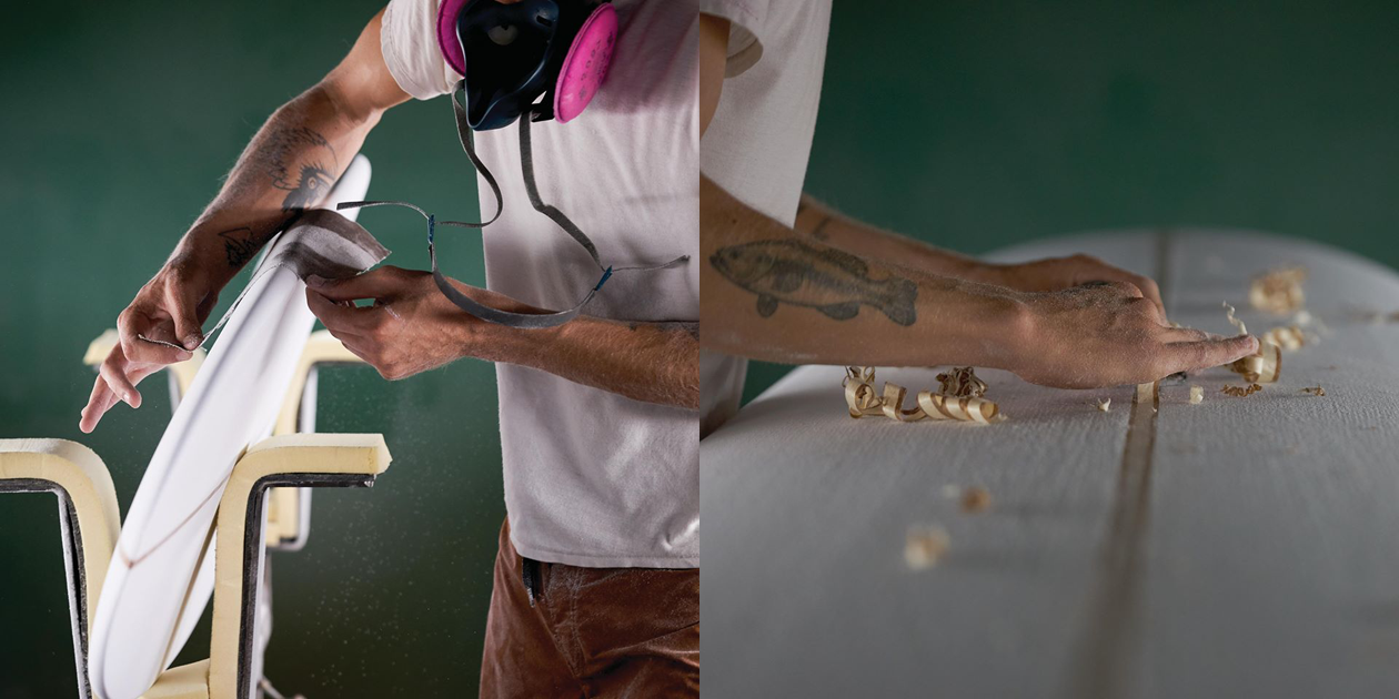 1本1本丹精込めて、乗り手をイメージしながらシェイプするため、彼はシェイプマシンは使用せず、オールハンドシェイプにこだわります。