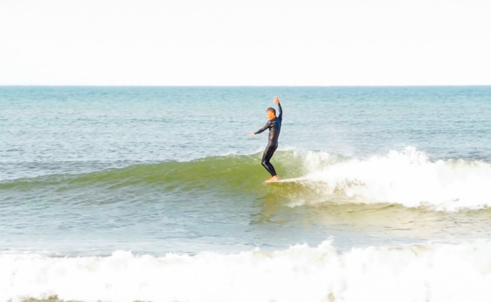 重たいシングルフィンロングボードを巧みに操り、完璧なノーズライディングとクラシックスタイルを披露し国内のプロコンテストで見事優勝を果たし