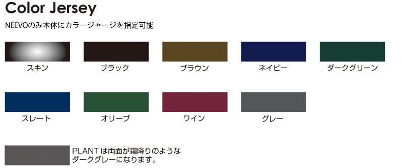 素材がNEEVO/ニーヴォの場合は本体にカラージャージをご指定いただけます。