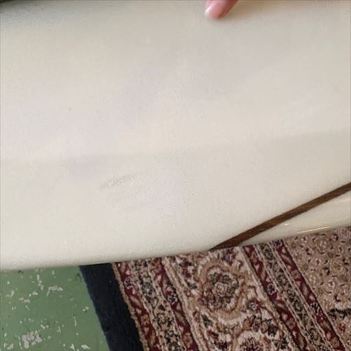 デッキには多少のフットマークがあり、レール、ボトムにリペア痕がありますが浸水の心配はありません。フィンは若干の擦れがありますが捻じれはありません