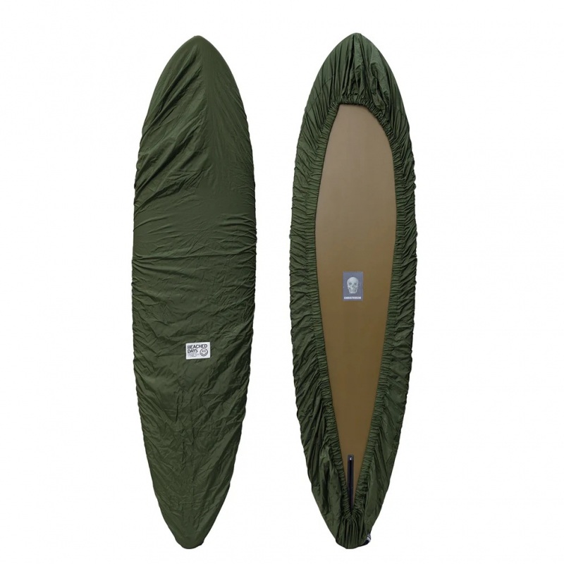 6'7〜8'4ftのミッドレングスボードにピッタリのナイロンデッキカバー。幅広ゴムでストラップ不要。伸びっぱなしになりづらく、ストラップも不要のシンプルなデッキカバーです。テンションのかかるノーズとテールを2重にして強度をUPしています。