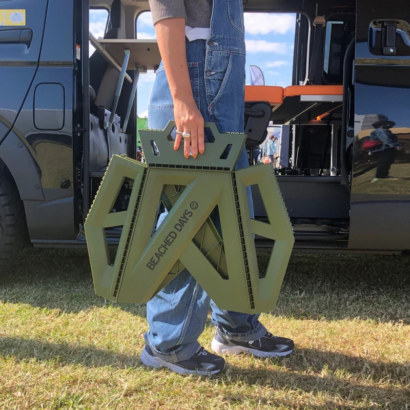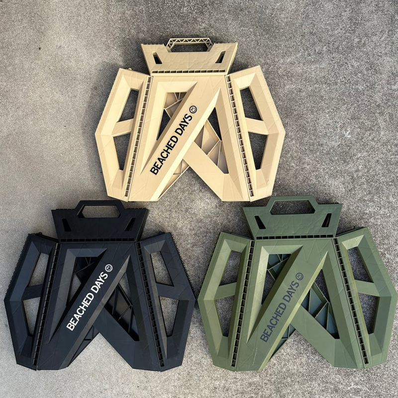 コンパクトなので、キャンプやイベントにサッと出してワンタッチで片付けることができます。座ったり、物を置いたりするのにも丁度良い39cmという高さにこだわりました。