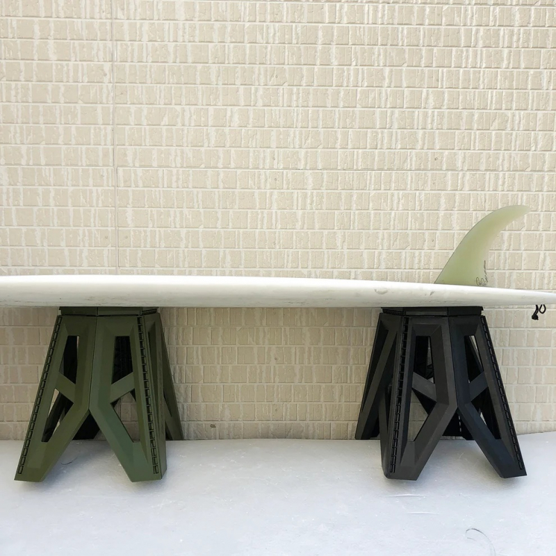 2台で支えればサーフボードのリペア・ワックスアップに。せっかく使うならスタイリッシュなスタンドをどうぞ。