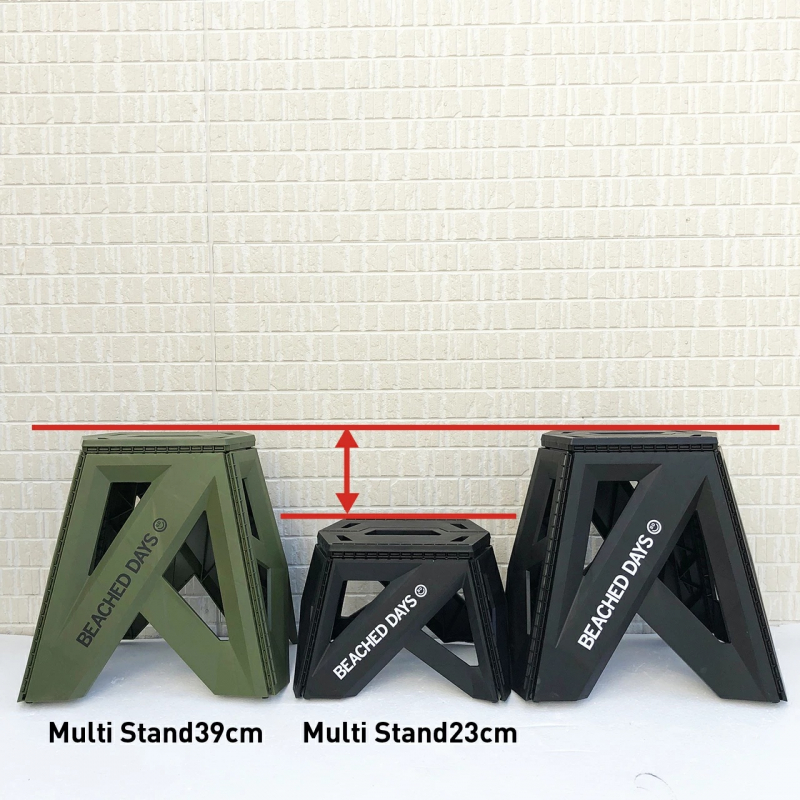 ベストセラーのマルチスタンド23cmのニュータイプ高さ39cm。サーフボードを載せたり、脚立・踏み台として使ったり、アウトドアライフにマルチに活躍。ミリタリーを彷彿させる無骨なカラーリングも魅力です。