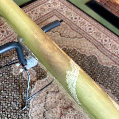 デッキには多少のフットマークがあり、ストリンガー沿い、レールに数か所のリペア痕がありますが浸水の心配はありません。またボトムに数か所の凹みがありますが浸水の心配はありません。