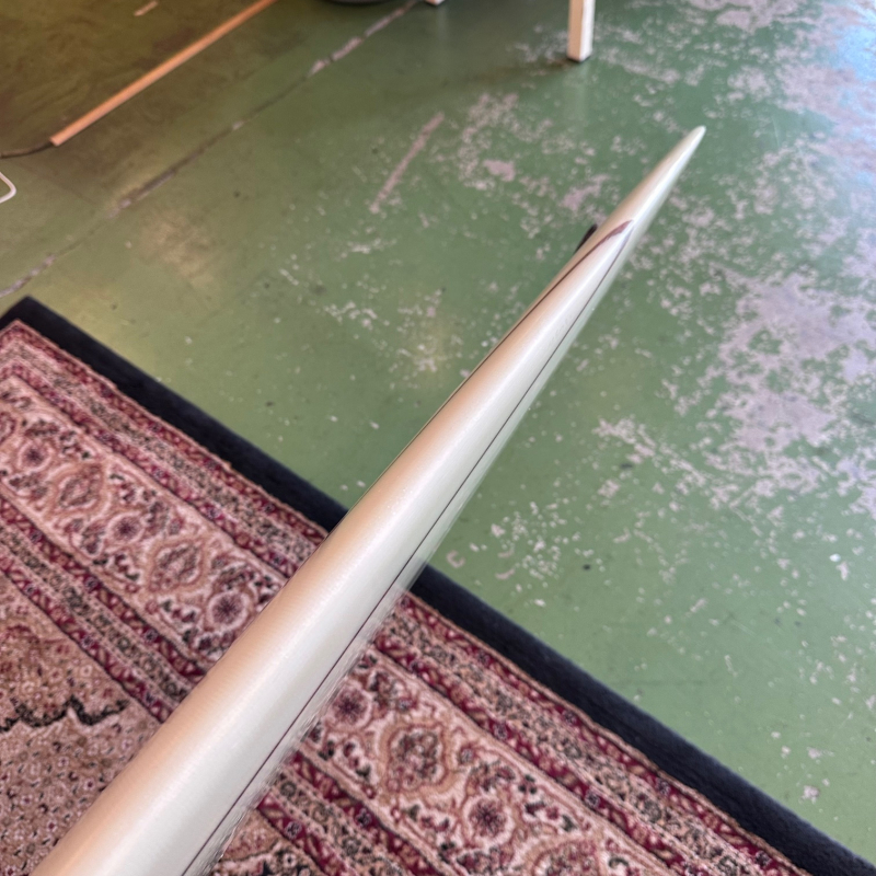 速い波に対応できるように先端が尖った形状をしたボードです