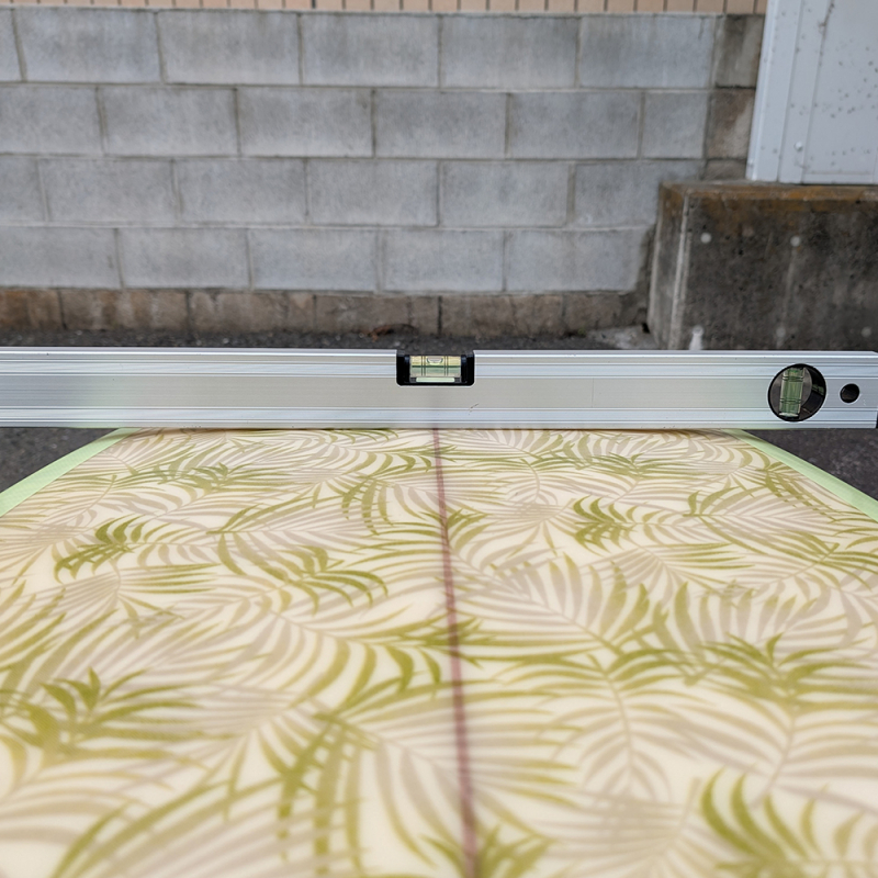 テールが最大幅に近くストレートにカットされているサーフボード創世記の形状です