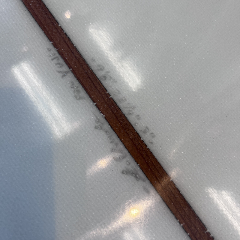 デッキ面にフットマーク、ストリンガー沿いクラックとリペア痕、レール周りに当たり傷が2箇所ほどございます。
