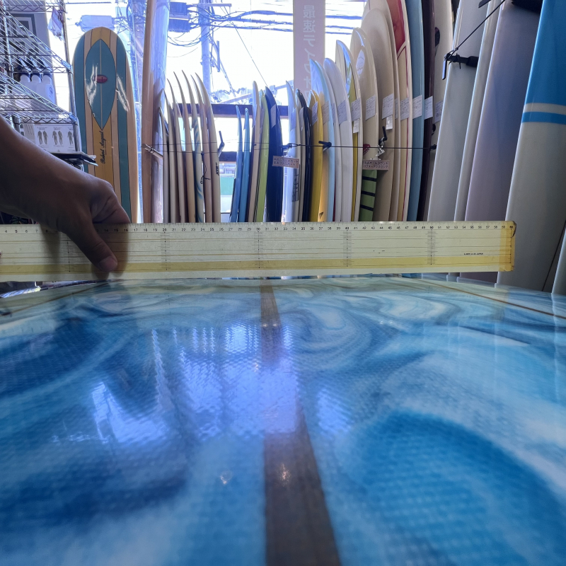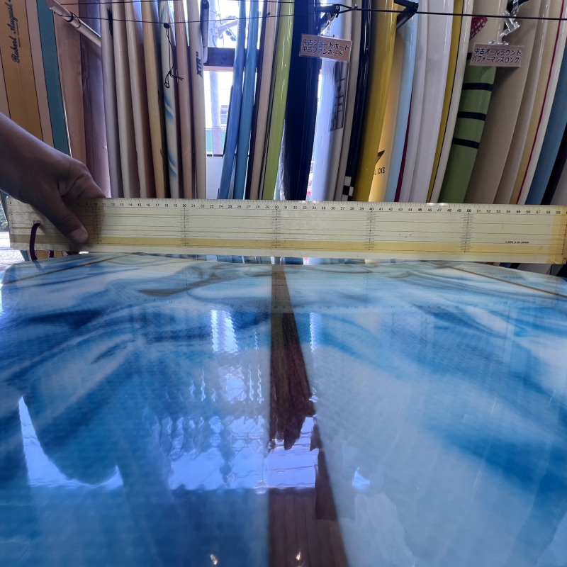 ノーズライディングをし易いボードですが、小波からのテイクオフ性能と操作性も考慮されたトロイエルモアチューニングとなっております。