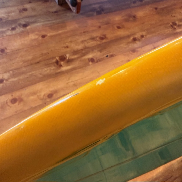 デッキ面にフットマーク、フットマークによるストリンガー沿いのクラック、レース周りに当てキズやクラックなどのリペア痕があります。購入後そのままお使いいただけるコンディションです。