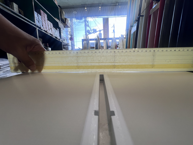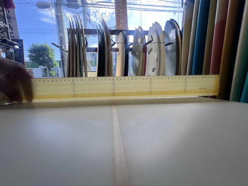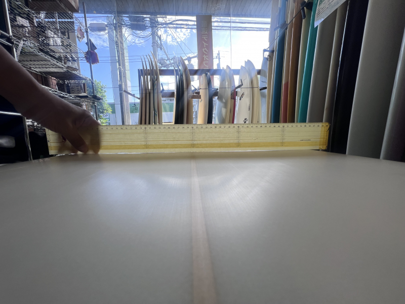 ボリュームを抑えられたダウンレールにボトムはほぼフラット〜ダブルコンケーブな形状です。