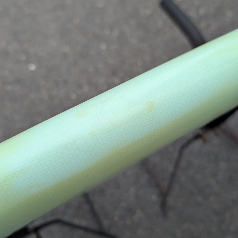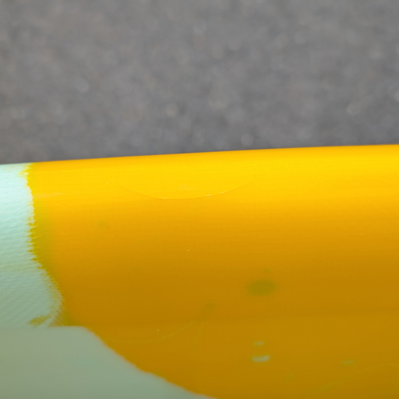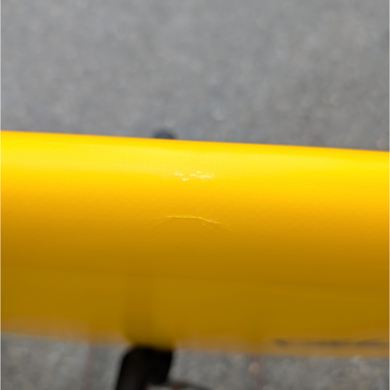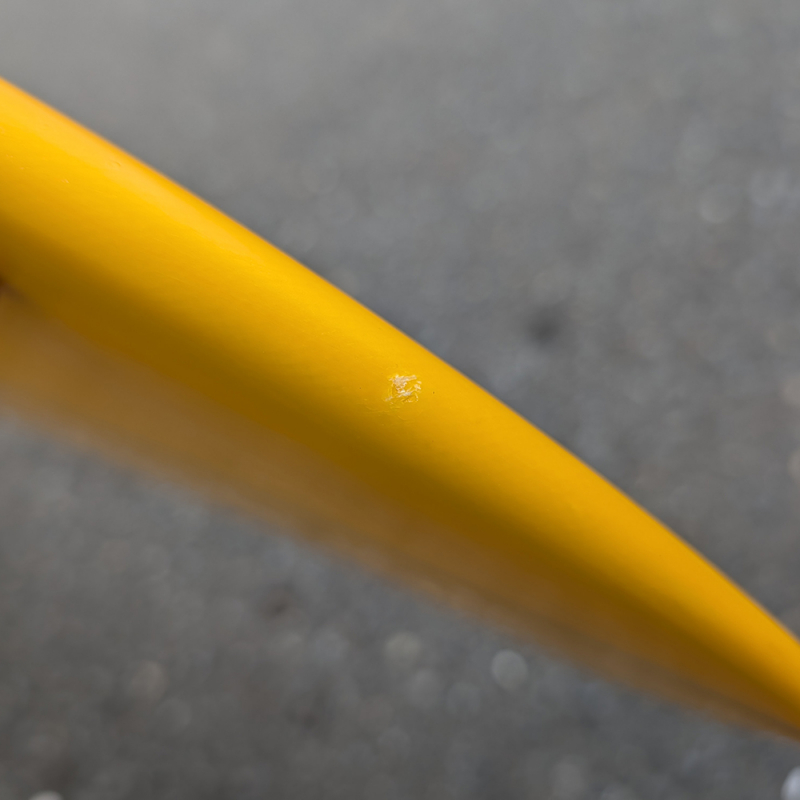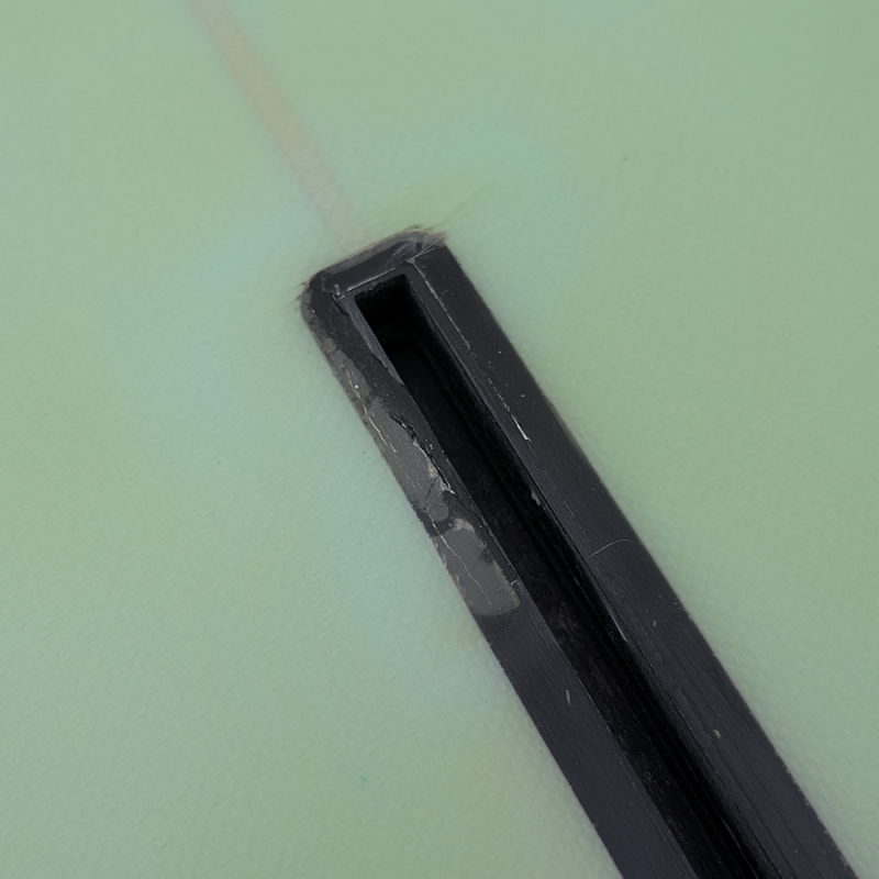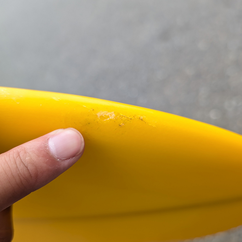 使用感があり、日焼け、フットマーク、デッキとボトムの凹み、ストリンガー沿いのクラック、ボックスのリペア痕、レールのリペア痕があります。