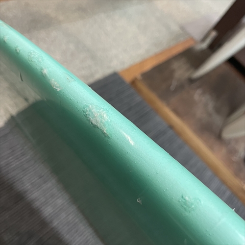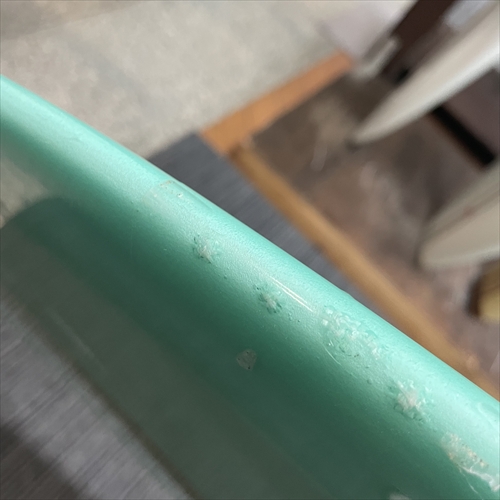 デッキにはフットマークが多数あり、ボトム面には凹みが数か所あります。レールには当たり傷があります。