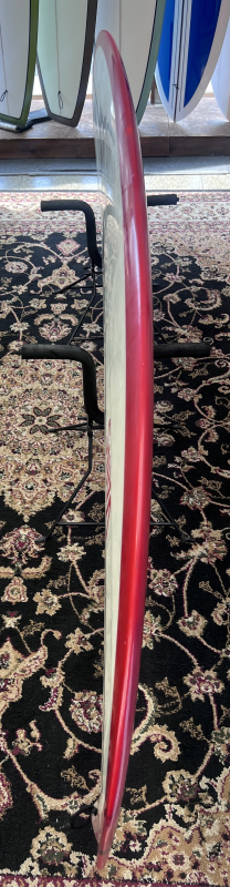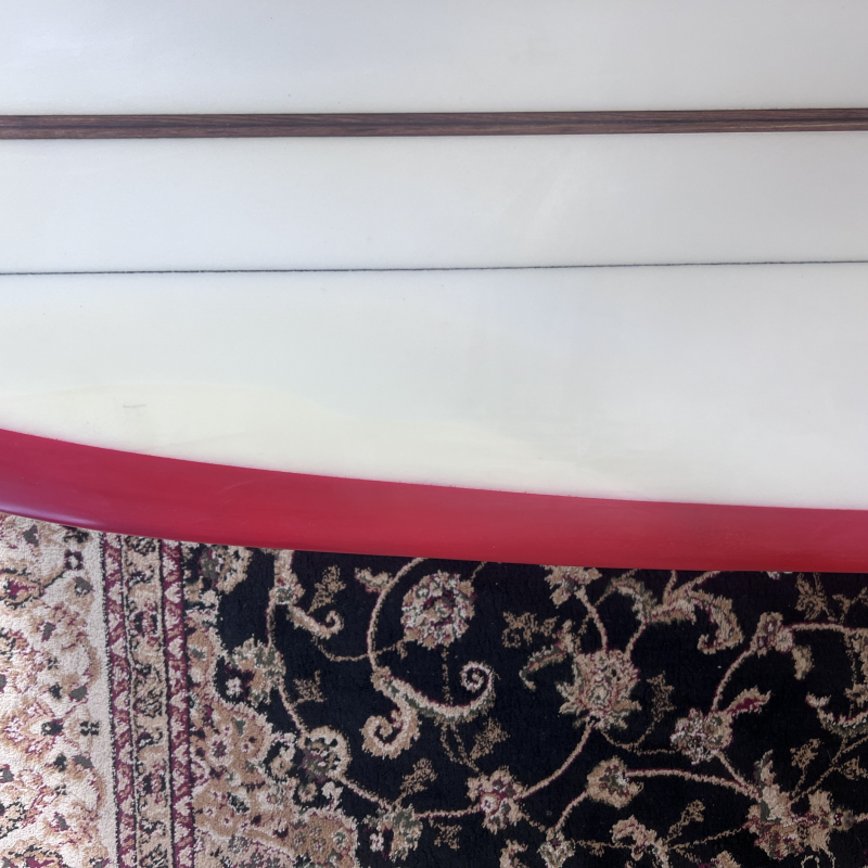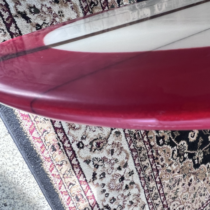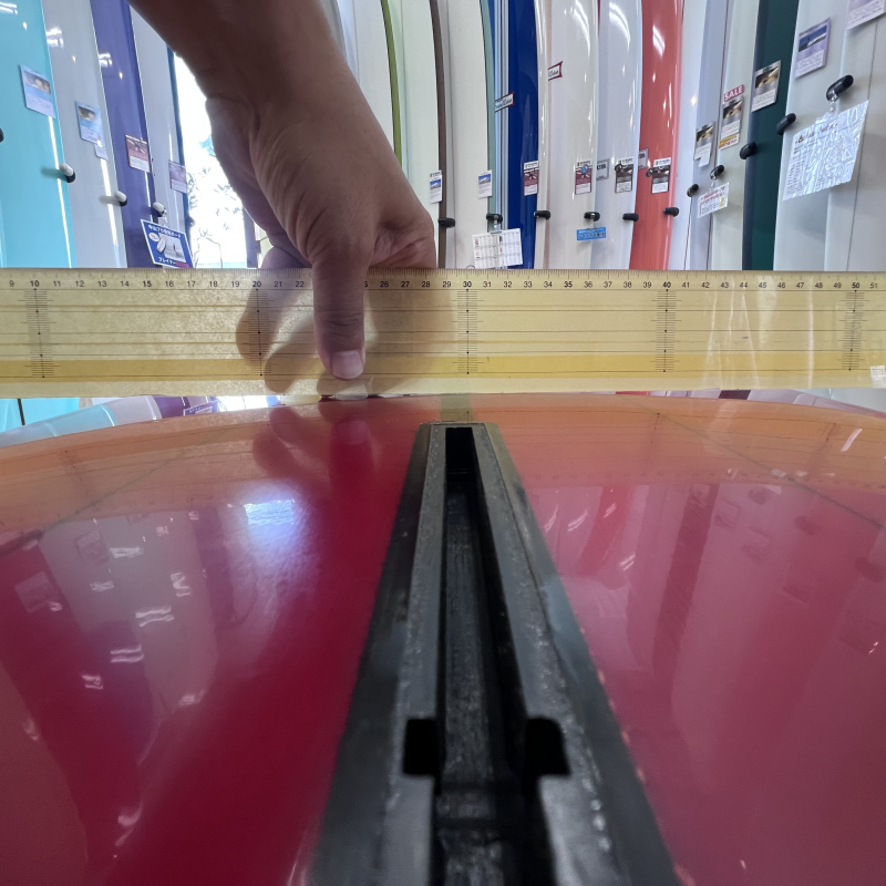 ボトムは薄っすらノーズコンケーブ〜ややラウンド〜ややVEEとなり、レールはテール寄りが薄く仕上げてあります。
