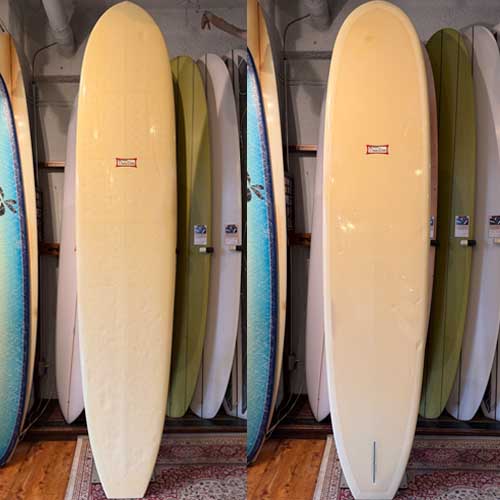 ノーズ部分のデッキ面が薄くシェープされているボードで動きとノーズライディングに効果があります