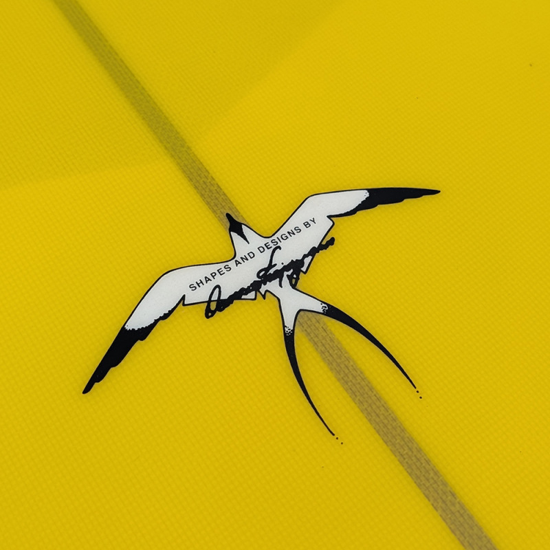 ストレートラインが長いアウトラインに幅と厚みがしっかりとあり浮力のあるボードです。
