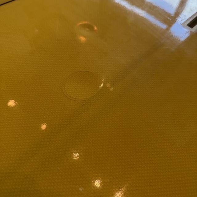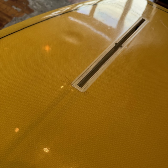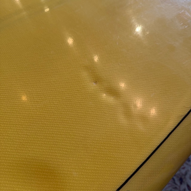 デッキ面にフットマーク、フットマークによるストリンガー沿いのクラック、レース周りに当てキズやクラックと一部リペア痕、ボトム面に数箇所の凹みとクラック・セルフリペア痕がありますがまだまだお使いいただけるコンディションです。