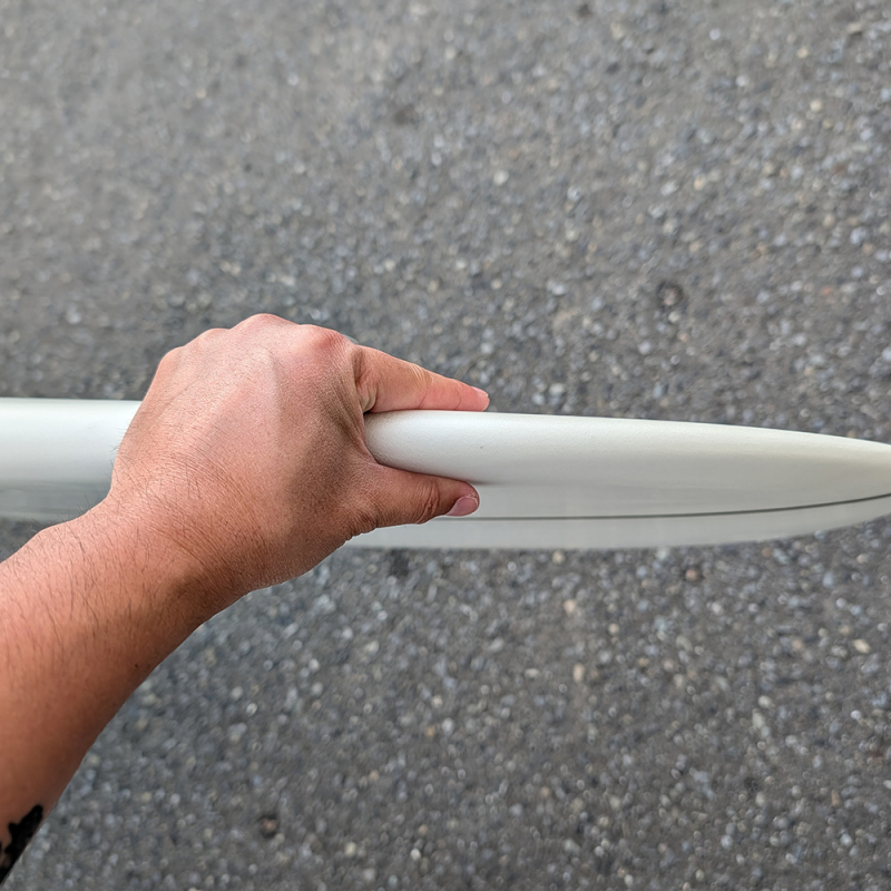 ロッカーはノーズテール共に中程度ついており、ボトム面はノーズコンケーブ〜ゆるいVee〜強めのVeeとなっています。