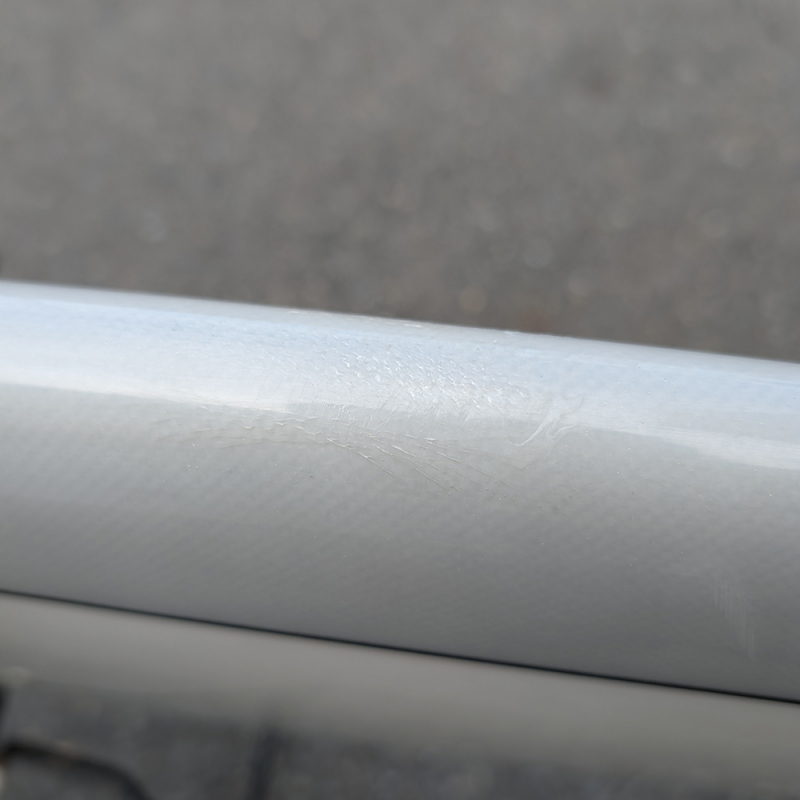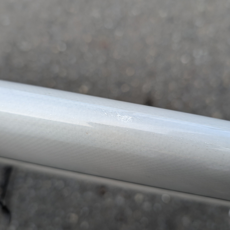 やや使用感があり、軽いフットマーク、擦り傷、ストリンガー沿いのクラック、レール周りにリペア痕がありますが、リペアの必要はなくそのまますぐにお使いいただけます。