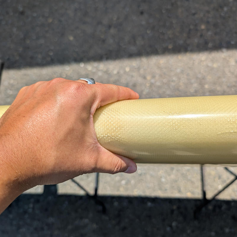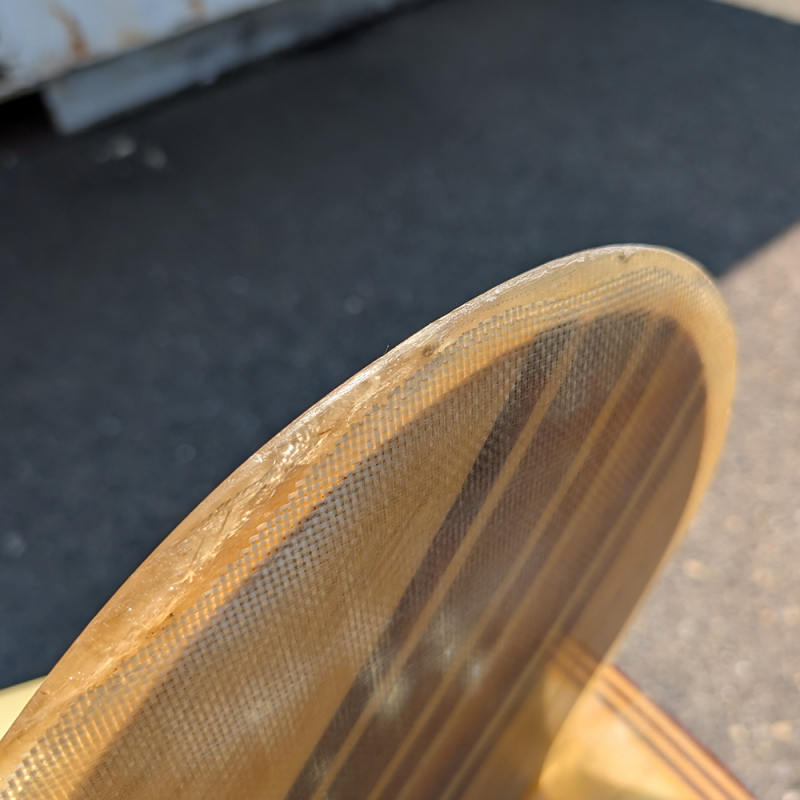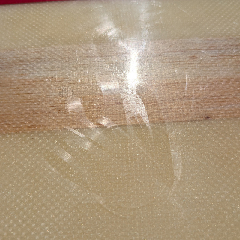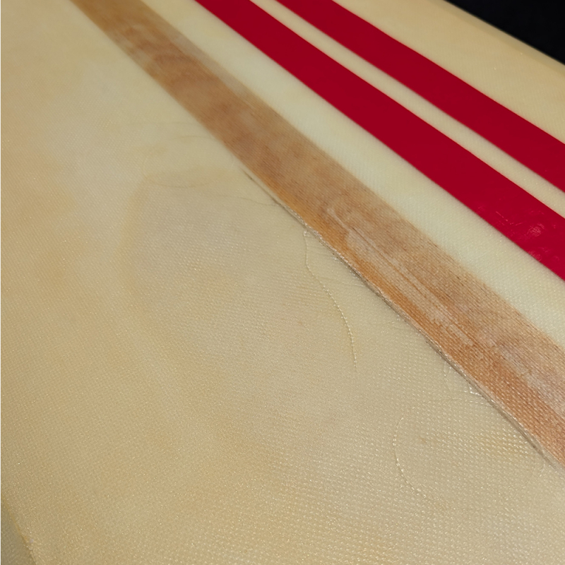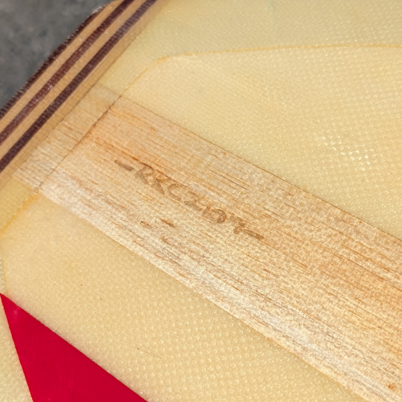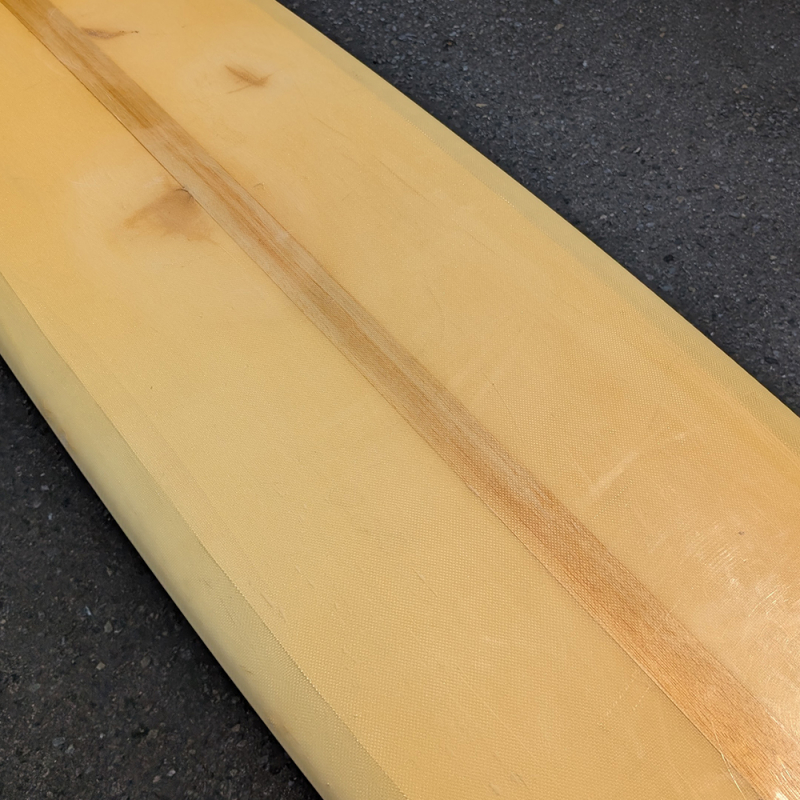 極太のバルサストリンガーにウッドのテールブロック、そして大きなウッドのフィンがグラスオンで装着されています。
