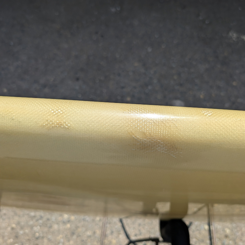 全体的に使用感があり、日焼けや各所にリペア痕が複数あります。