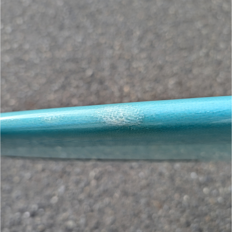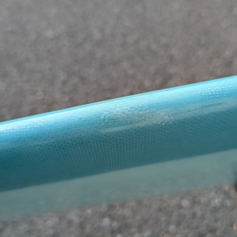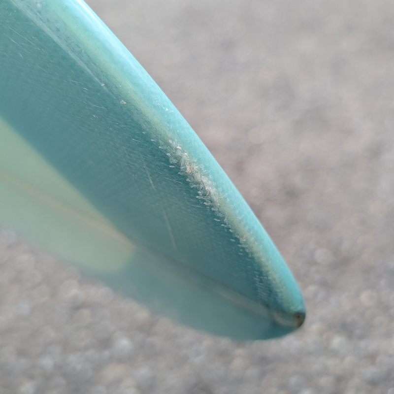 使用感があり日焼け、フットマーク、デッキとボトムの凹み、ストリンガー沿いのクラック、リペア痕があります。