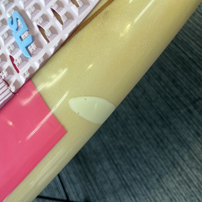 日焼け、クリアデッキの剥がし痕、フットマーク、ストリンガー沿いのクラック、デッキやレール、ボトムのリペア痕、当たり傷、擦り傷、凹みがございます。