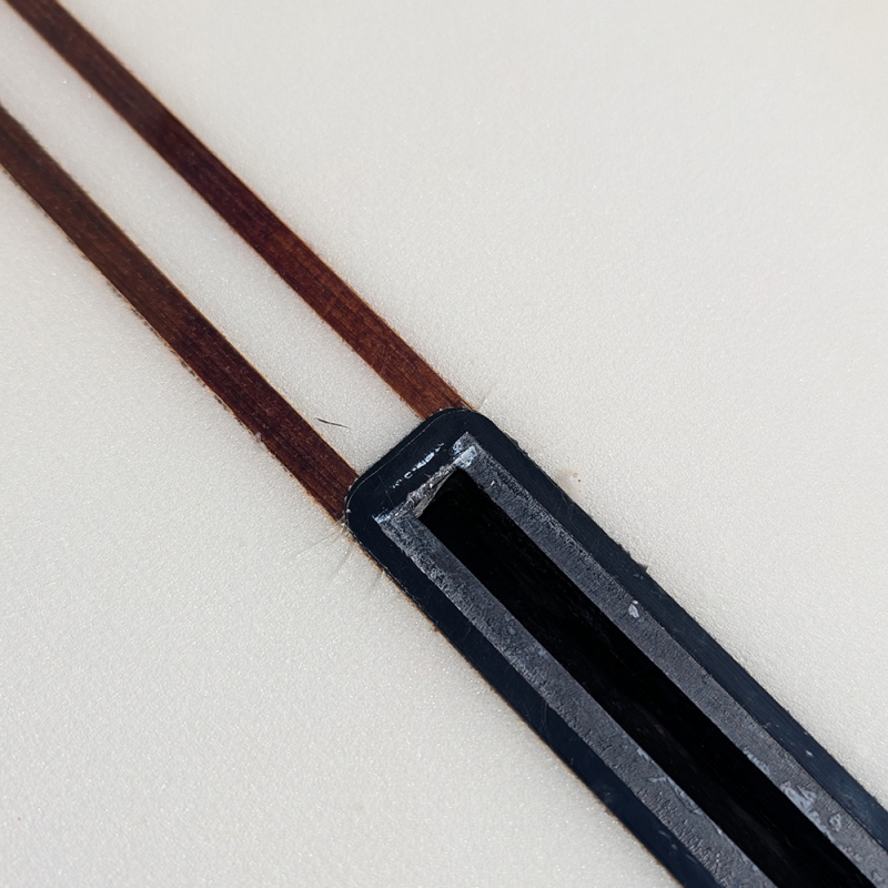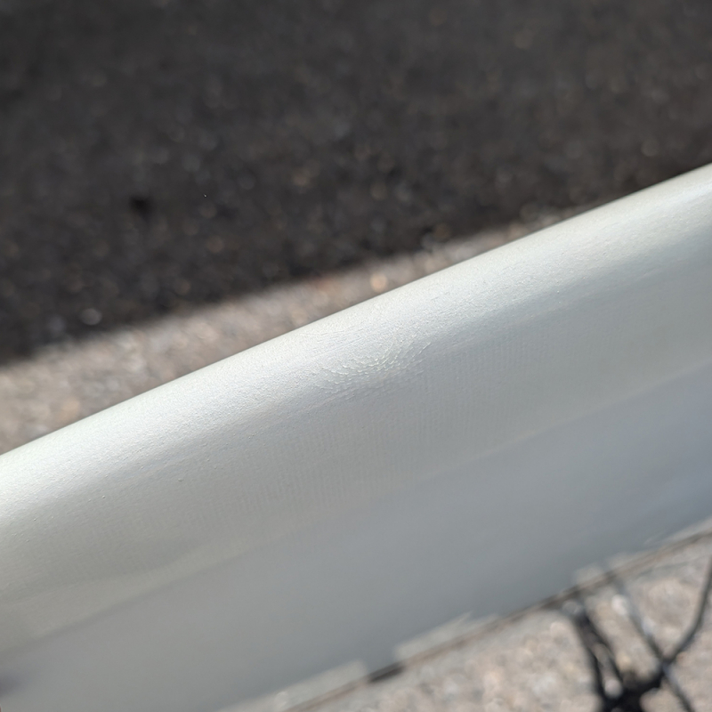 若干の使用感があり、軽いフットマーク、デッキはきれいですがボックスにひげ、ボトムにへこみ、長い線状の内部クラックがあります。レールにもいくつかプレッシャー痕がありますが、修理の必要はなくそのまますぐにお使いいただけます。