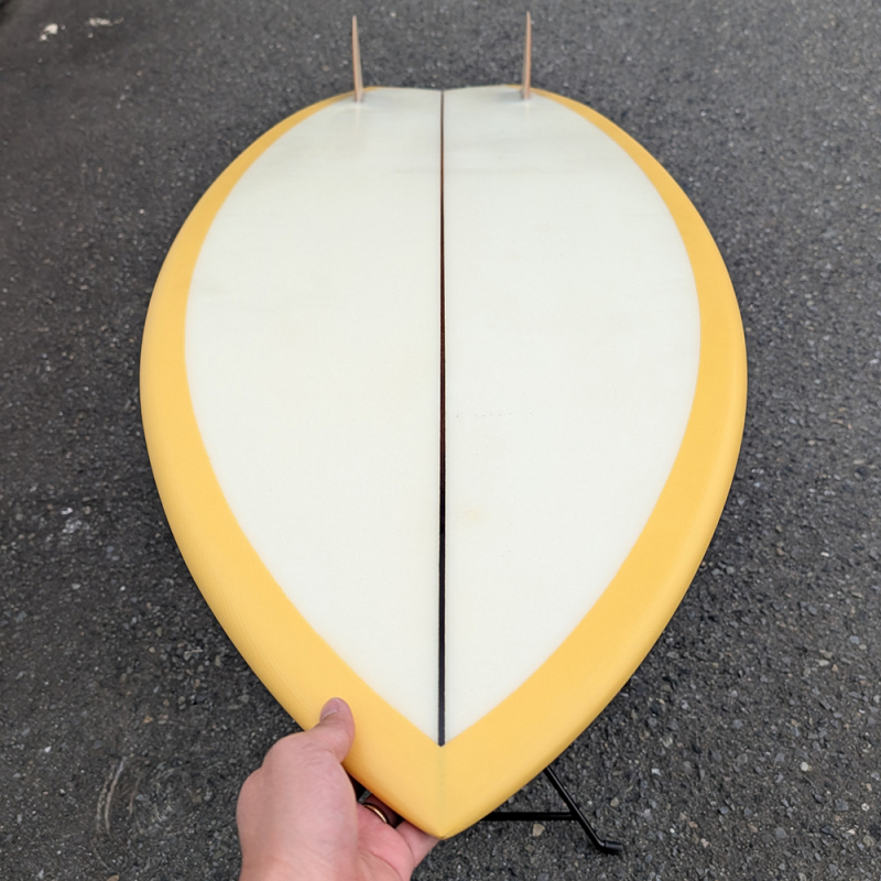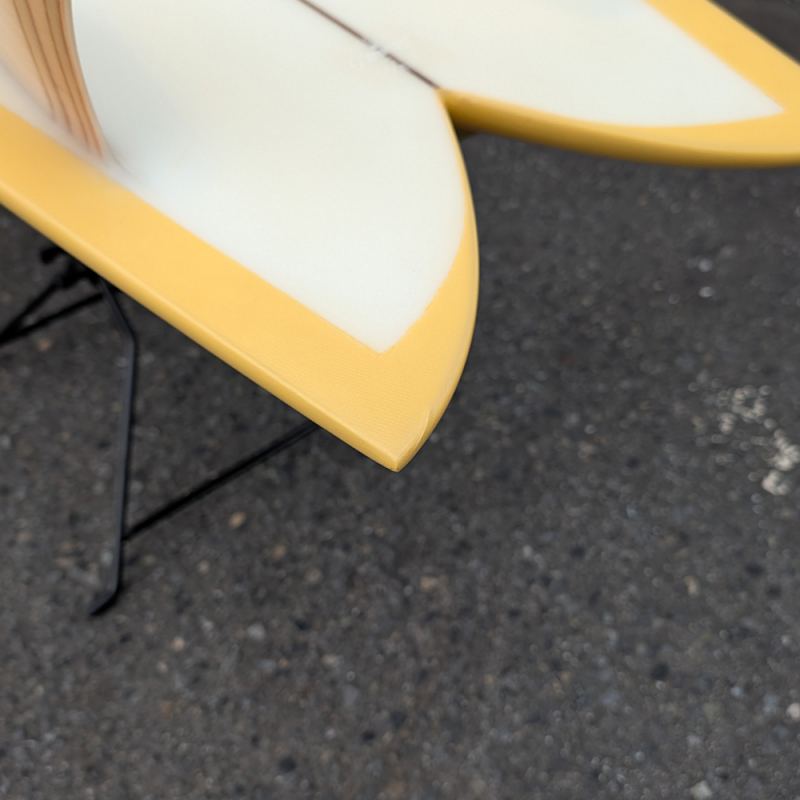 テールが最大幅に近くストレートにカットされているサーフボード創世記の形状です