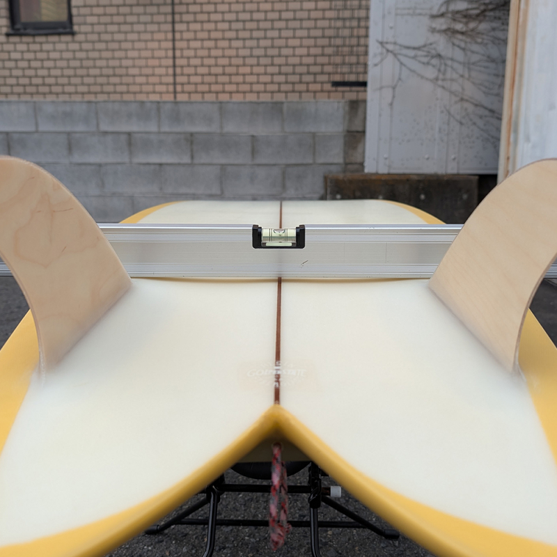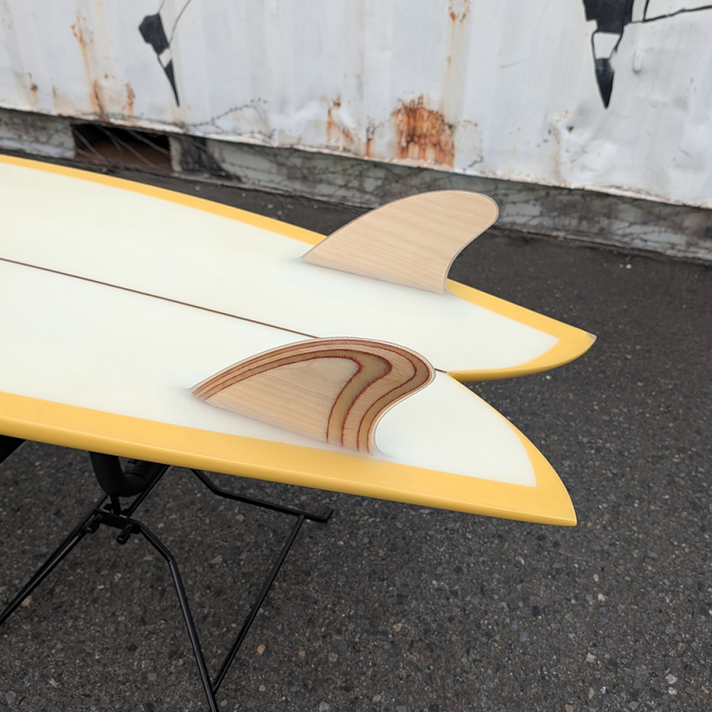 ウッドのキールフィンがグラスオンで装着されています。