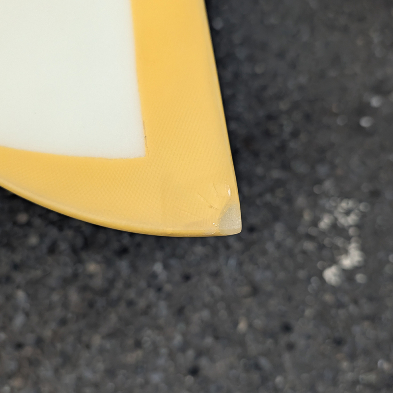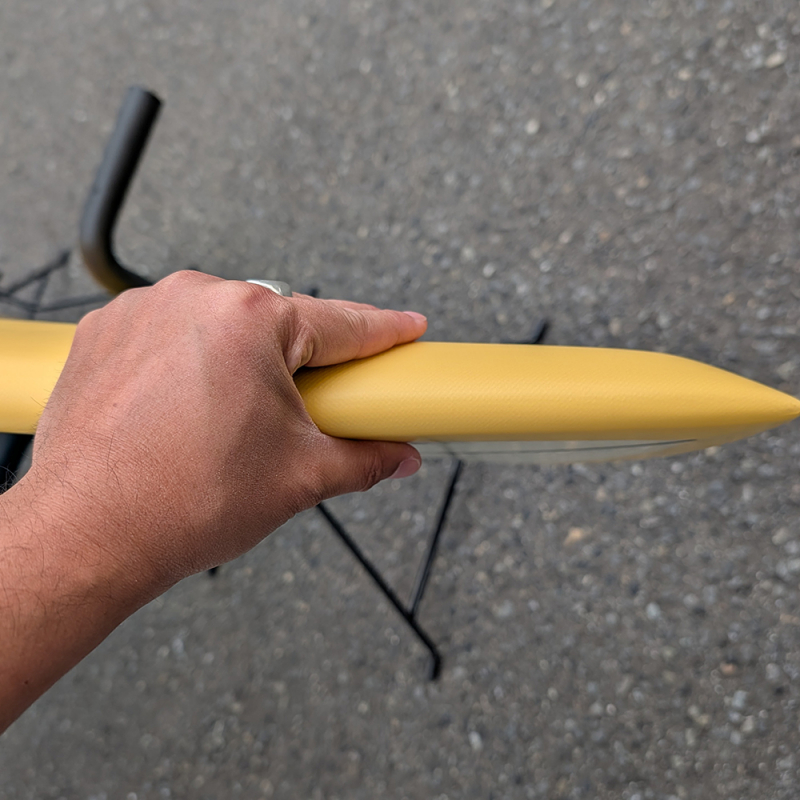 速い波に対応できるように先端が尖った形状をしたボードです