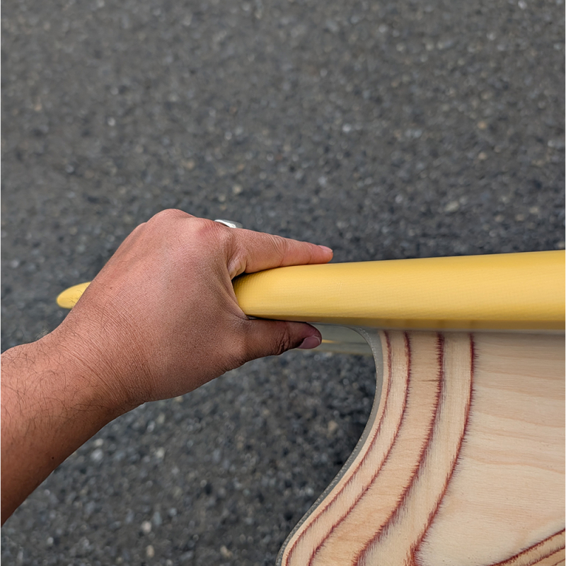 ノーズ部分のデッキ面が薄くシェープされているボードで動きとノーズライディングに効果があります