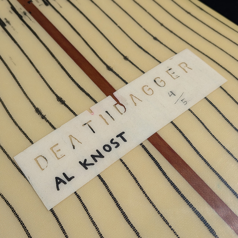 アレックスノストのシグネチャーモデルでもあるデスダガーのリミテッドバージョンで、ウェッジストリンガーにハンドプリンティングした8オンスのクロスをボランクロスを使用しています。ロゴはアレックスのフリーハンドによるサインです。