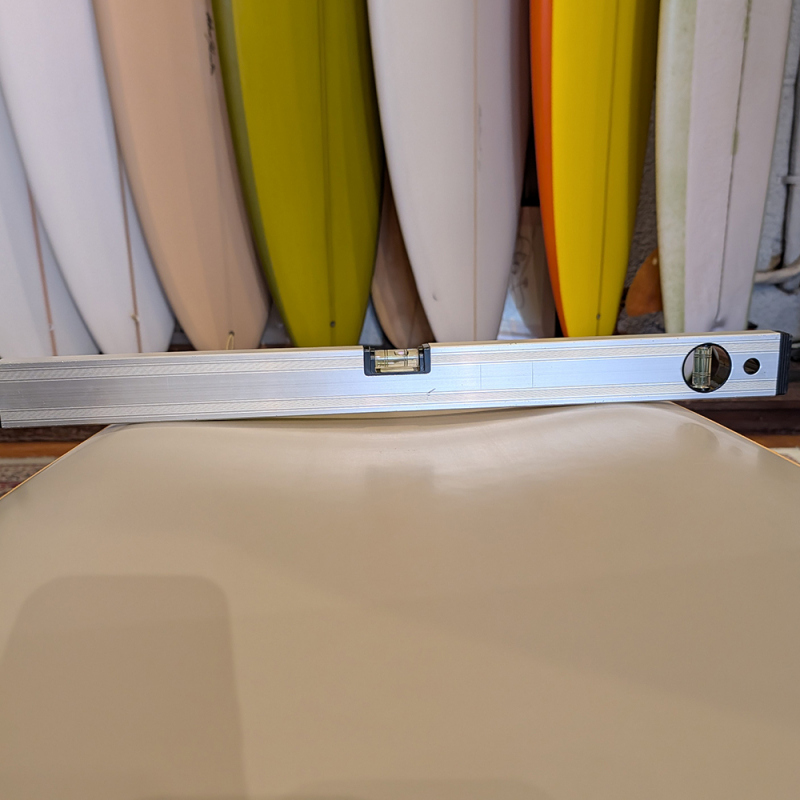 テールが最大幅に近くストレートにカットされているサーフボード創世記の形状です