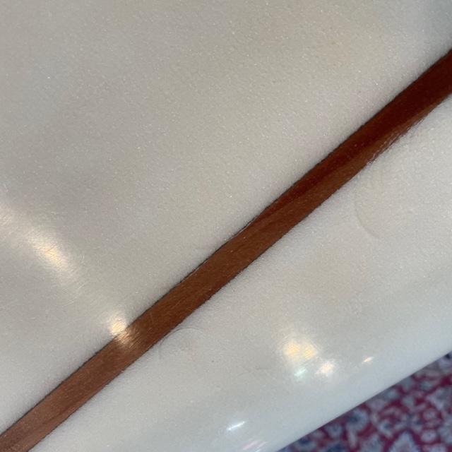 デッキ面にフットマーク、フットマークによるストリンガー沿いのクラックが複数個所、テールとノーズに当てキズが1箇所づつあります。