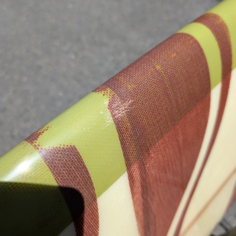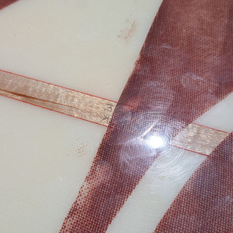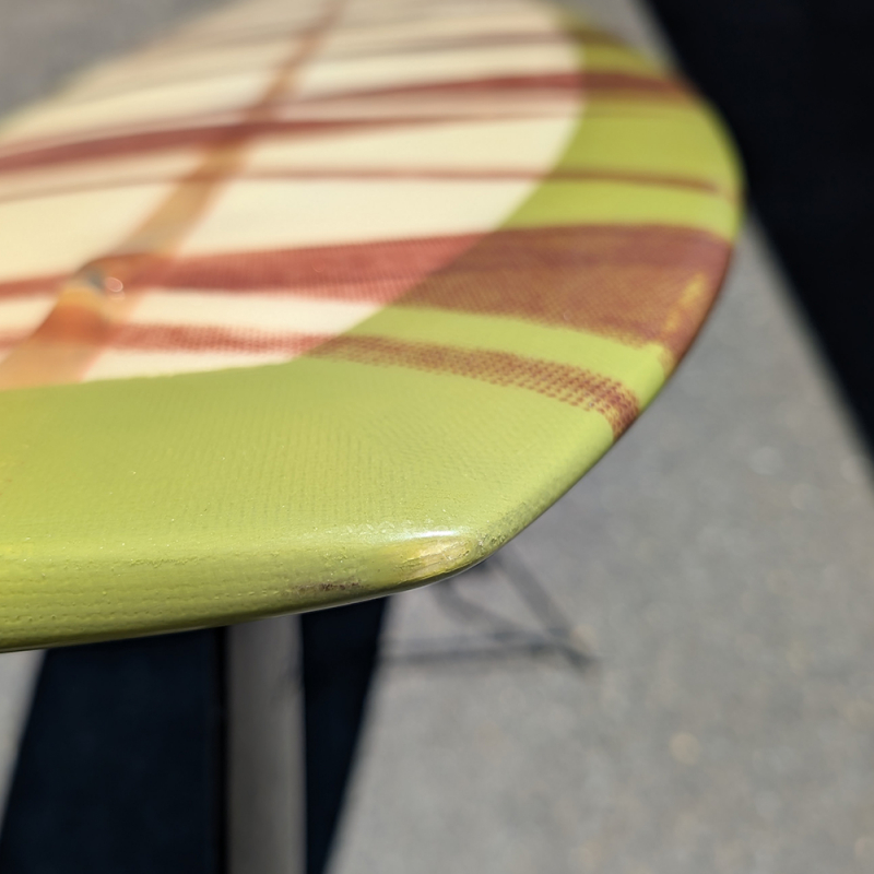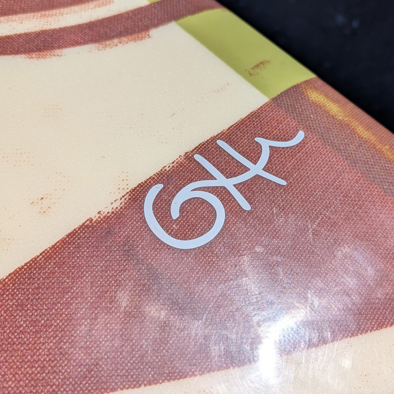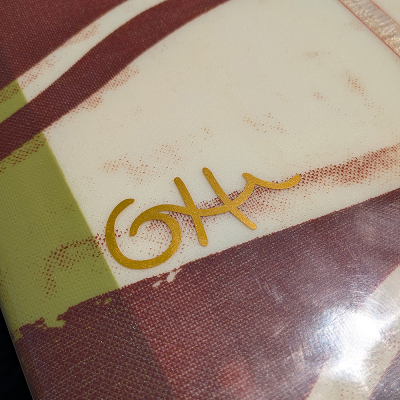 今は亡きロビンの相棒クリスによるシルクスクリーンの手の込んだラミネートも非常に芸術性が高く、細身のアウトラインとフリークウェイブのロゴも施された特別な一本です。