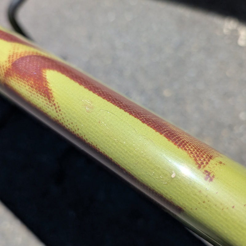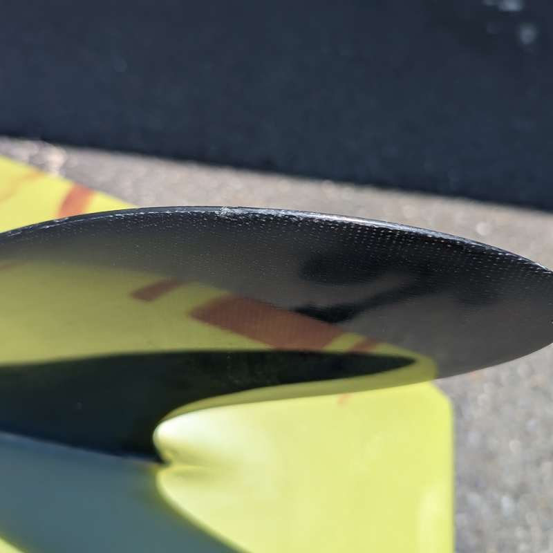 あまり使用感はなく、若干のフットマーク、デッキの軽微なへこみ、レール、フィンの軽い擦り傷があります。