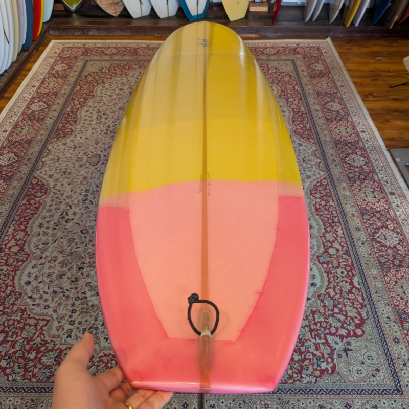 1960年代後半から70年代前半のロングボードからショートボードへと転換する過渡期に作られたボード、もしくはその考えに基づいて作られたボードです