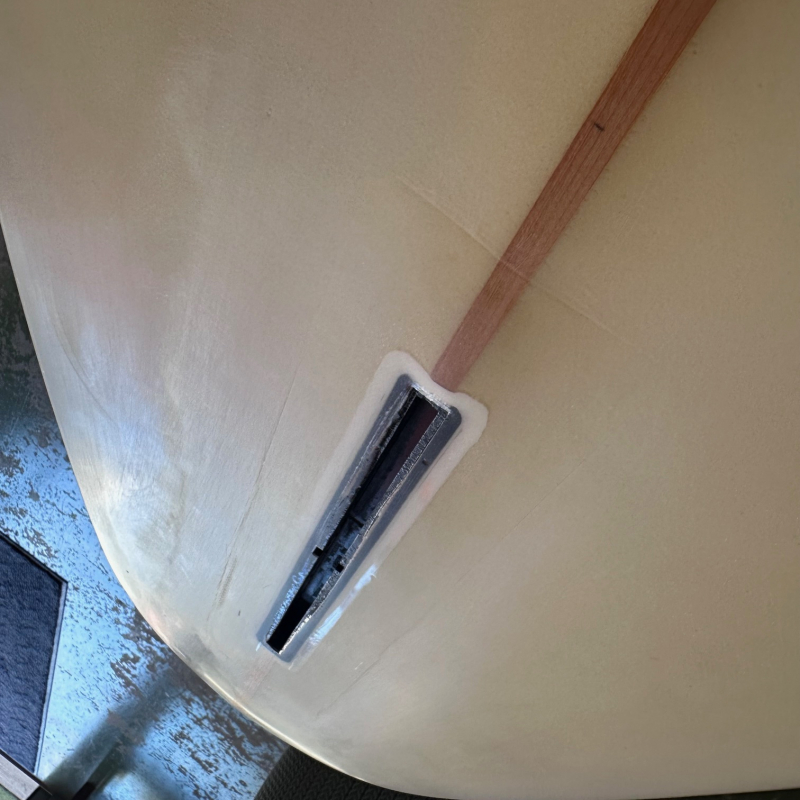 ボトムにはヘコミが多少あり、フィンボックスを交換した痕がありますが浸水の心配はございません。