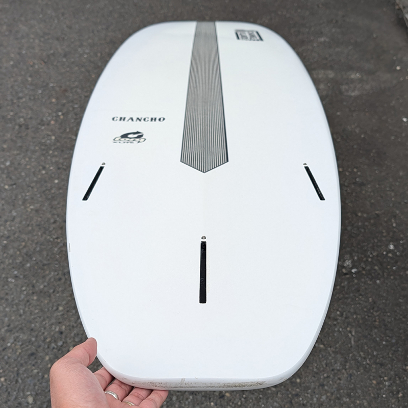ボトム面がボートの底のような形状でスピードを発揮するコントロールが難しいタイプのボードです