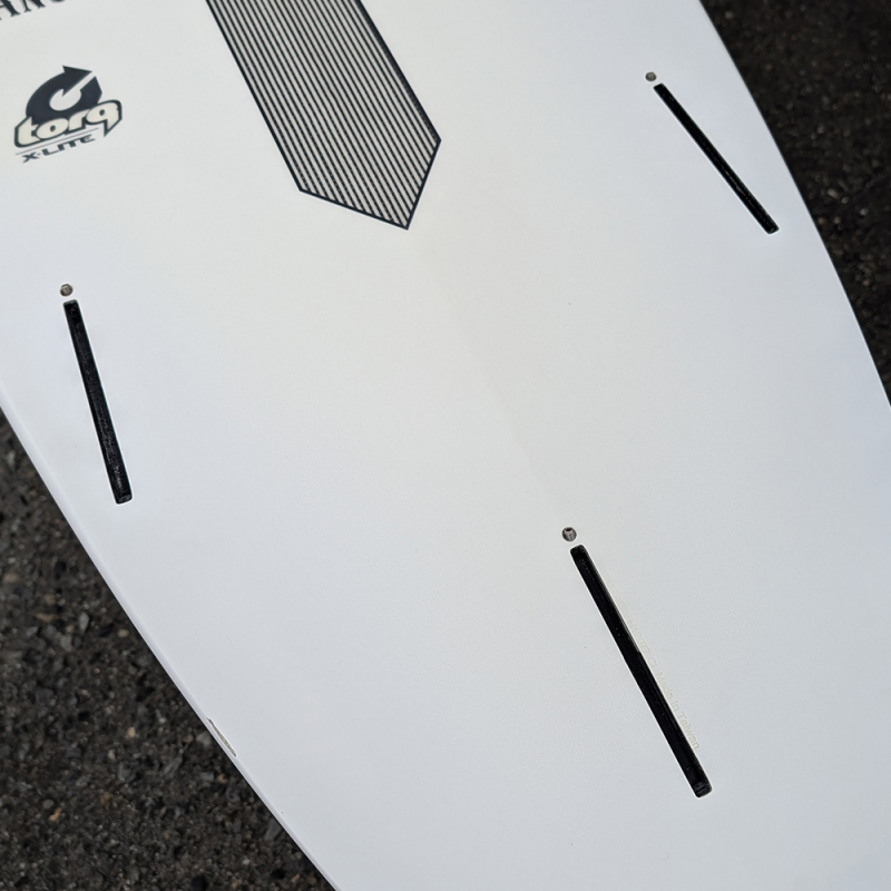 独特のボトム面とフィンのセッティングで水の流れを制御することによってボードのスピード性を向上させるボードです