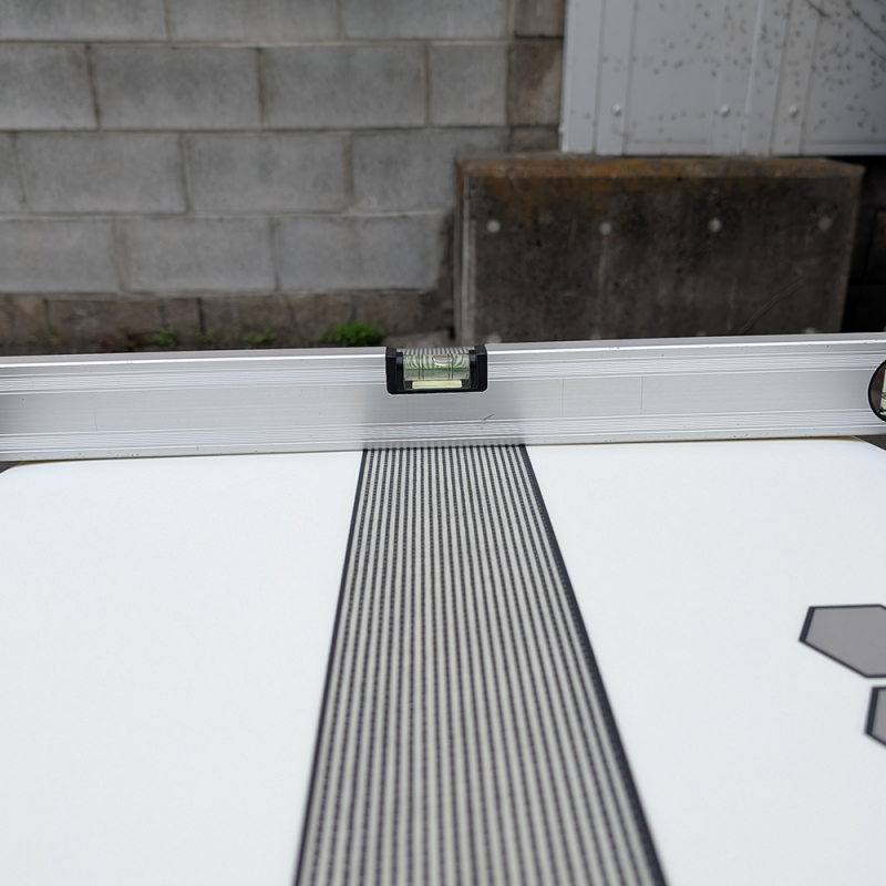 ロッカーはフラットに近く、ボトム面は薄っすらとシングル〜ダブルコンケーブになっています。