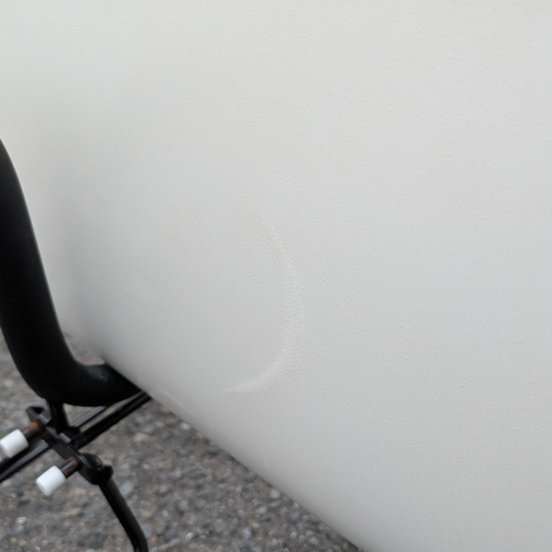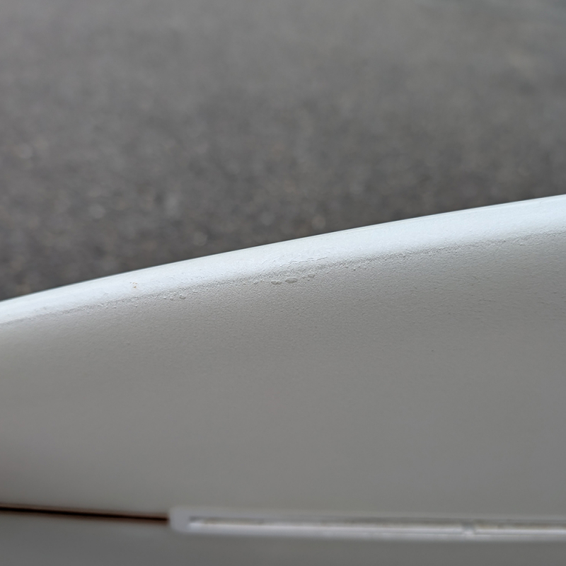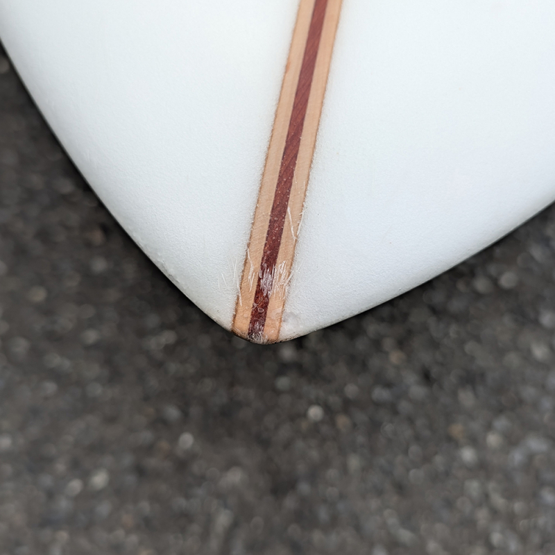 あまり使用感はなく、軽いフットマーク、デッキにプレッシャーによる中割れ、レール、テールのリペア痕があります。