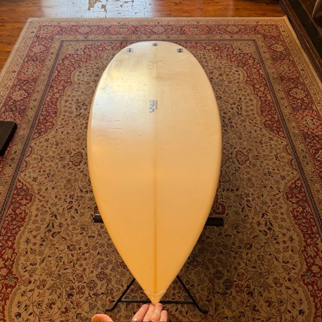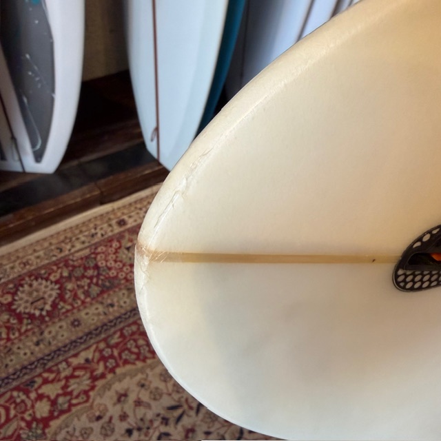 テールが最大幅に近くストレートにカットされているサーフボード創世記の形状です