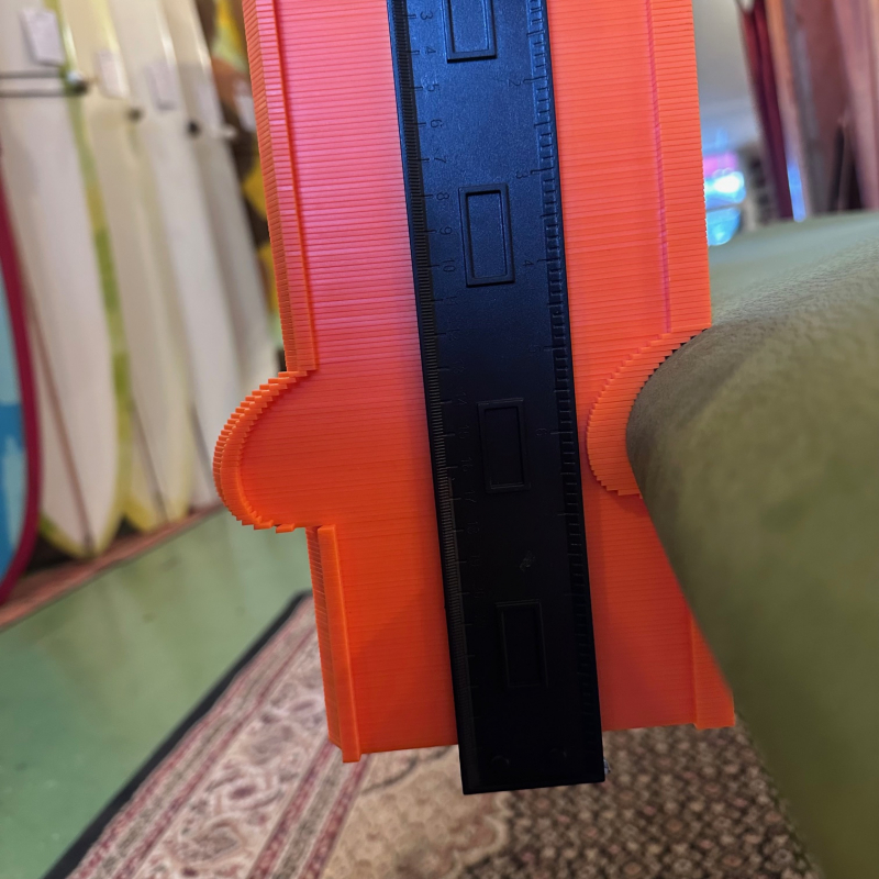 テールが最大幅に近くストレートにカットされているサーフボード創世記の形状です